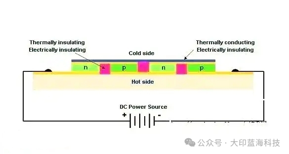 TEC(Thermoelectric Cooler),也被称为半导体制冷片,在众多设备中发挥着关键的温度控制作用。其基本工作原理源于 珀耳帖效应,这是一种热电效应,表现为金属接触点处的一侧吸热而另一侧放热。由于纯金属的热电效应相对较小,因此在实际应用中,我们通常采用半导体材料来显著增强这一效应。通过改变电流的方向,可以轻松切换TEC的冷热面,这本质上是在外加电场的作用下,利用电子流将内能从一侧转移到另一侧的过程。