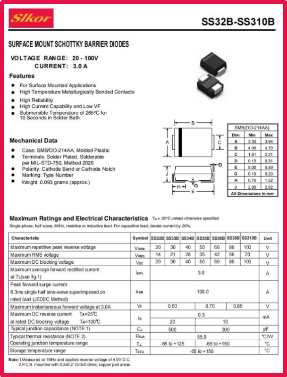 在电子元件的缤纷舞台上,各类器件争奇斗艳,共同编织着现代科技的绚丽画卷。萨科微Slkor精心雕琢的SS310B肖特基二极管,宛如一位身怀绝技的“效率魔法师”,以其独特魅力与卓越性能,在电子世界中掀起了一场效率革命的浪潮。