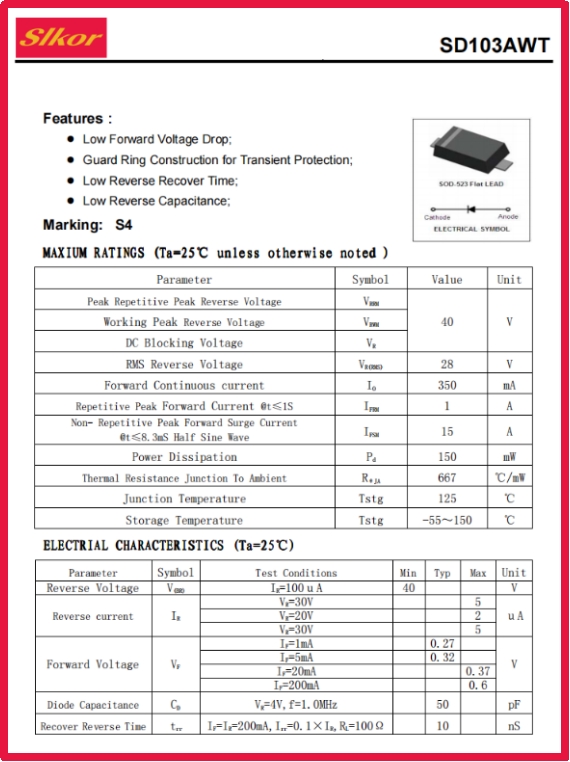 萨科微Slkor肖特基二极管SD103AWT规格书