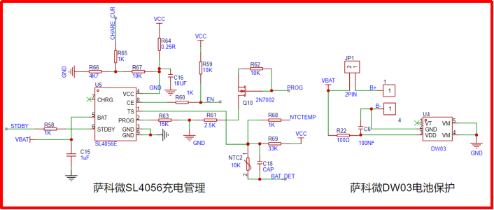 5.1图一仅为单片机采集锂电池充电参考电路,需要注意的是DW03通过100R电阻连接到锂电池正极,芯片2脚接锂电池的负极,4脚和5脚接GND即可,用户按照规格书参考设计,就能清晰的搭建相应的单芯锂离子电池保护电路。