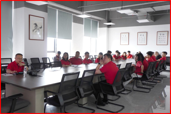 金航标总工秦祥宏(左一)培训《天线生产工艺和主要组件介绍》