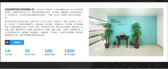 萨科微产品日益丰富,用于工业和军工产品有:碳化硅SiC二极管、碳化硅SiC MOS管、IGBT、第五代超快恢复功率二极管等,应用在新能源汽车、高端装备、通讯电力设备、太阳能光伏、医疗设备等行业;民用消费类产品有:高中低压的MOS管、可控硅、桥堆等功率器件,肖特基二极管、ESD静电保护二极管、TVS瞬态抑制二极管、通用二极管三极管,和电源管理芯片、霍尔HALL传感器、高速光耦三大系列,应用在智能手机、手提电脑、机器人、智慧家居、物联网车联网、LED照明、3C数码产品等领域。萨科微还将推出更多数字和模拟集成电路产品,为客户提供更全面的服务。