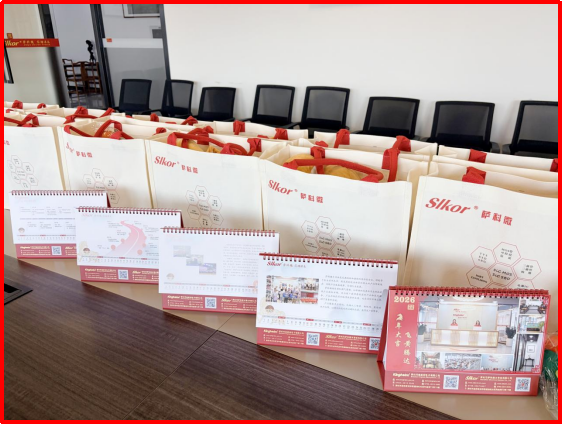 大会开始前,萨科微为每位参会代表送上了一份丰富的礼品,内含2026年定制台历、抱枕、咖啡杯、手机桌面支架以及公司的产品手册。这份礼品不仅体现了公司对合作伙伴的重视与关怀,也承载着萨科微品牌文化的传递和渗透。