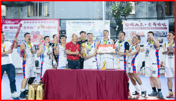 宋仕强(红衣者)为“萨科微”杯篮球联赛冠军球队颁奖
