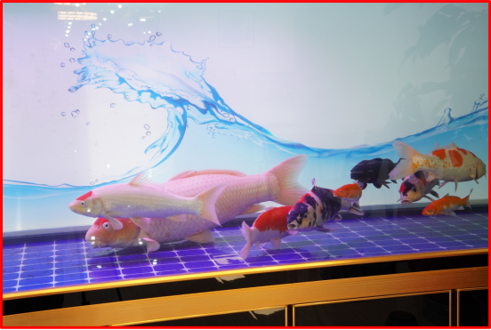 静中有动,办公室一角的锦鲤鱼缸里,多条名贵锦鲤怡然自得,桃太郎鱼王更是威风凛凛,自有王者风范,是大家工作间隙放松休闲好地方!