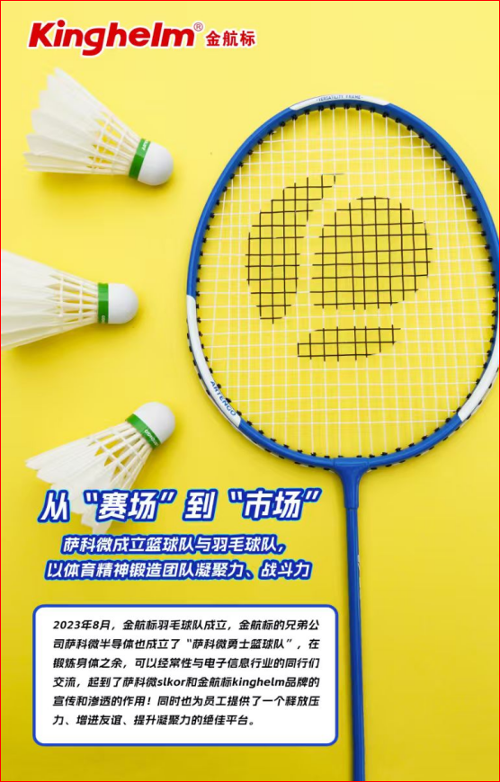 金航标/萨科微打造有活力有创造力的团队,除了每周之星评选活动,还定期举办茶话会,宋仕强先生还带领四川和重庆籍的同事们参加“川渝同芯会”的联谊活动,还有每年开春传统的“家乡美食节”。公司还组建了“Slkor萨科微勇士篮球队”和“Kinghelm金航标羽毛球队”,组织同事们团建打球交流,让员工们在锻炼身体的同时,增进彼此之间的友谊,让金航标/萨科微团队充满活力。