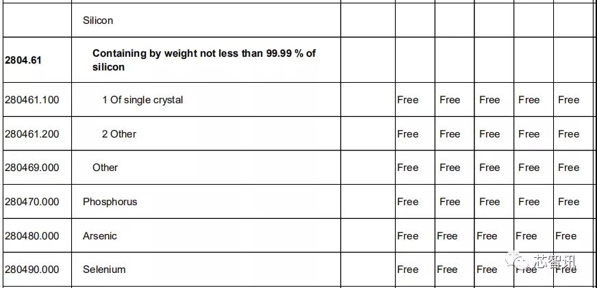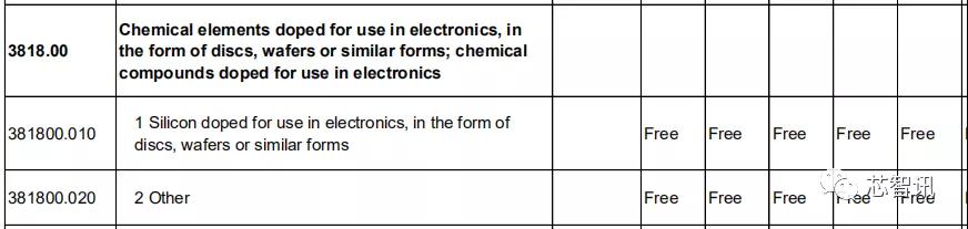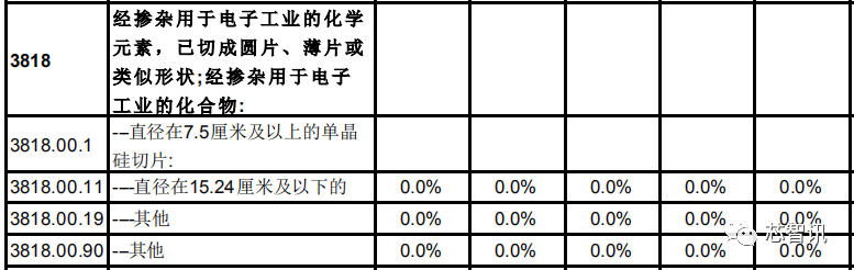 在经掺杂用于电子工业的硅片及硅材料方面,日本对中国的关税基准税率全部为0。