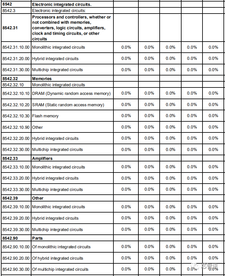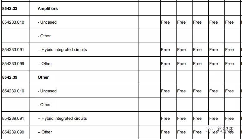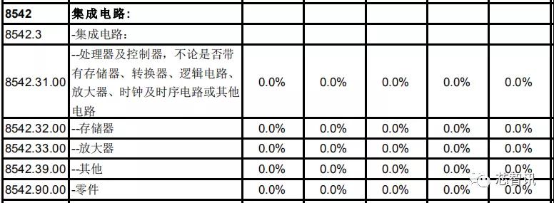 在集成电路方面,包括处理器、控制器、存储器、放大器及其他集成电路器件和零件,日本对中国的关税基准税率也都全部为0。