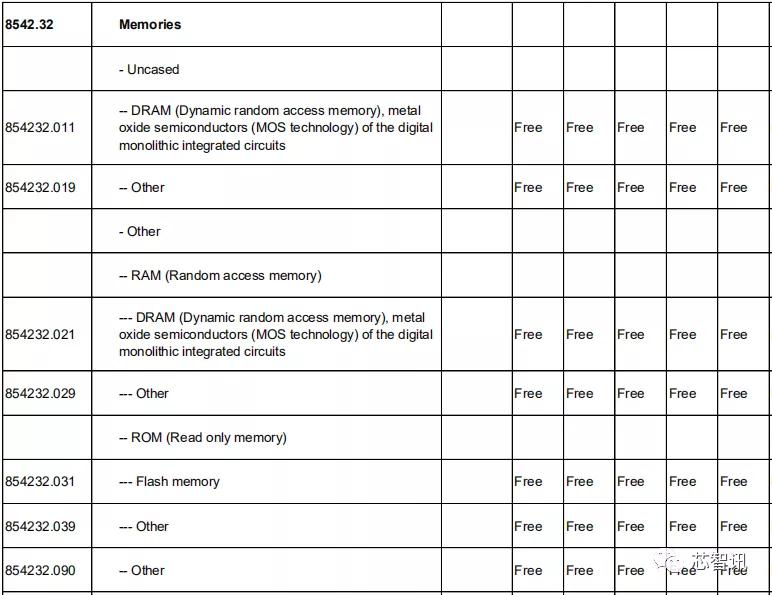 在集成电路方面,包括处理器、控制器、存储器、放大器及其他集成电路器件和零件,中国对日本的关税基准税率都全部保持为0。