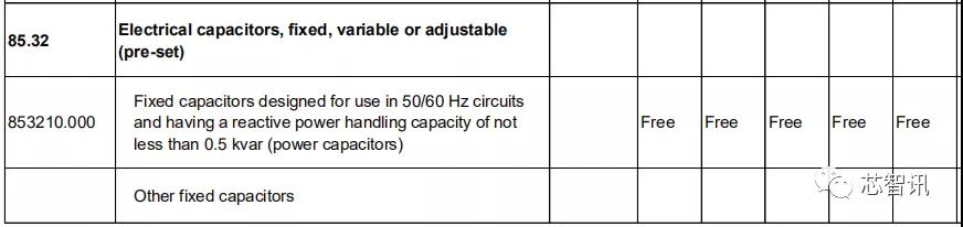 此外在电容、电阻、印刷电路方面,中国对韩国的关税基准税率也都全部保持为0。