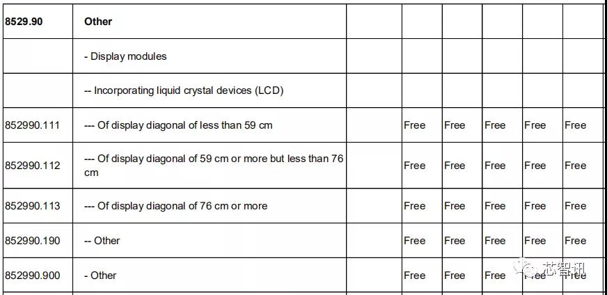 在电视机或显示器所需的显示模组,日本对中国的关税基准税率均为0。
