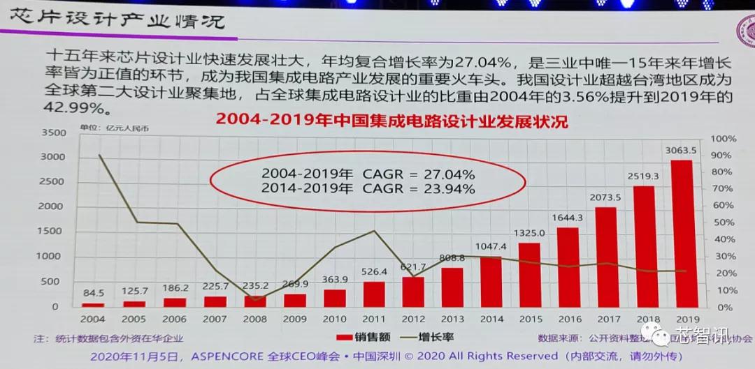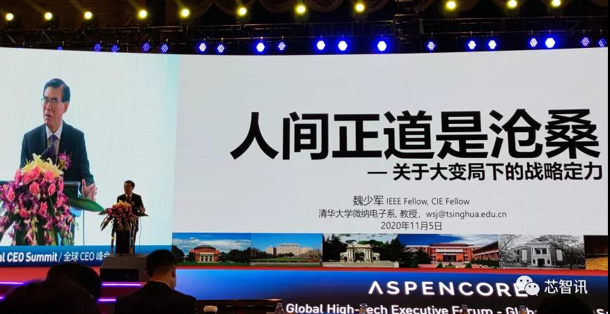 11月5日,由APENCORE主办的“2020全球CEO峰会”在深圳召开。中国半导体行业协会集成电路设计分会理事长魏少军教授做了主题为《人间正道是沧桑-关于大变局下的战略定力》的主题演讲。