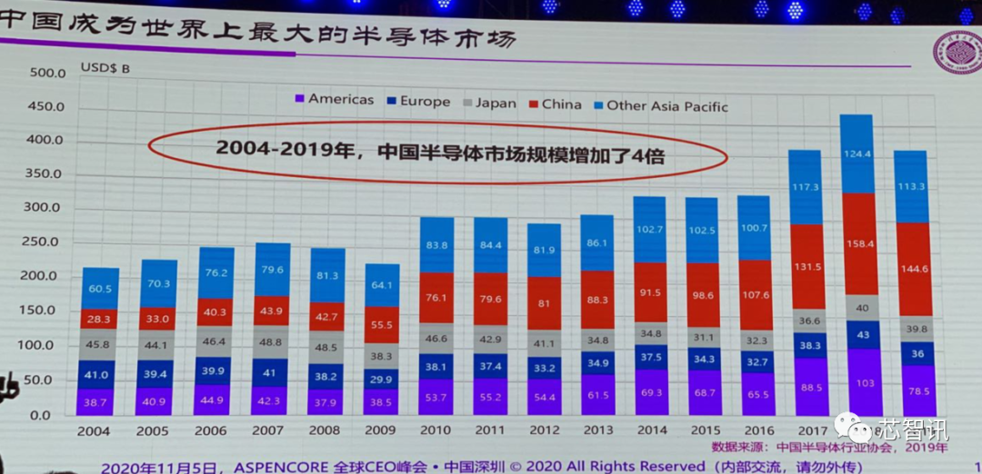 得益于中国信息产业的发展,中国也因此成为世界上最大的半导体市场。2004-2019年,中国半导体市场规模增加了4倍。而我们中国的半导体产业也占了全球市场的三分之一。所以,如此之多的数字“3”的出现,也说明这不是一个偶然现象,而是全局现象。