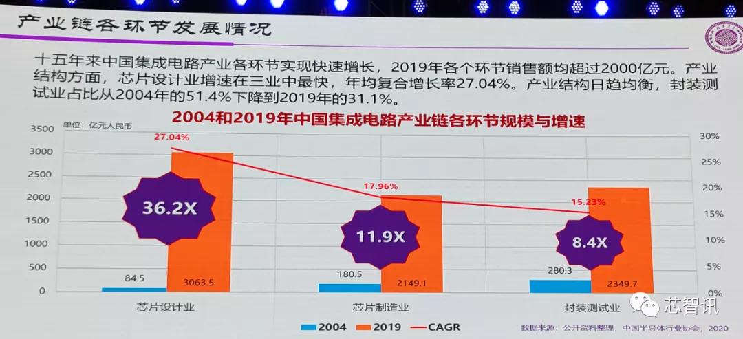 从中国集成电路产业的各个关键环节的发展情况来看,增长也是非常的巨大。