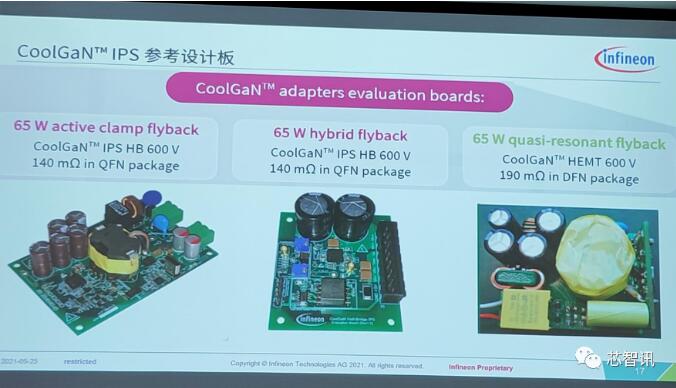 为了便于客户快速推出基于CoolGaN IPS系列器件的快充充电器产品,英飞凌还特地推出了三款基于CoolGaN IPS系列器件的65W快充充电器参考设计板。
