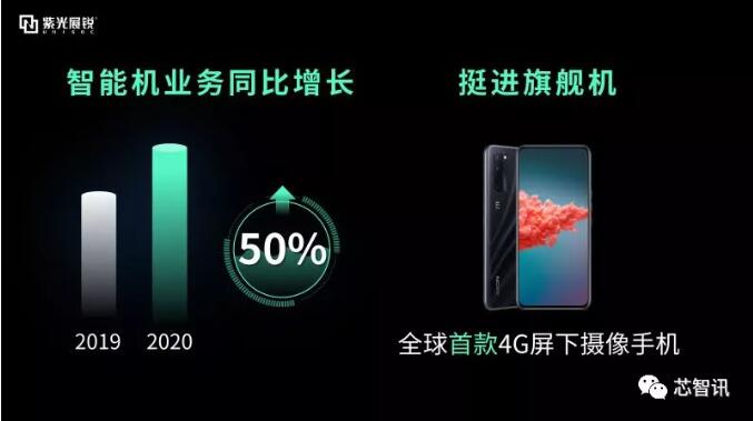 在手机市场,2020年,展锐在功能机芯片市场占有率高达76.92%,其中4G功能机出货量增长1.5倍,斩获80%的市场份额(IDC数据)。与此同时,展锐的智能手机芯片业务也在快速增长。