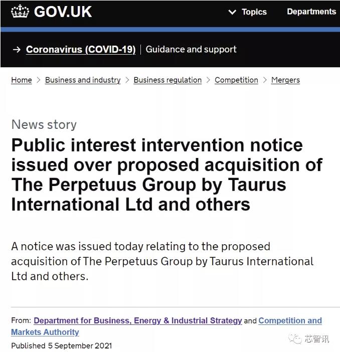据外媒报道,英国政府于9月6日表示,英国商务大臣Kwasi Kwarteng根据2002年《企业法》,9月5日发布《公共利益介入公告及征求意见》,要求英国竞争和市场监管局(CMA)对中国科学家周忠福(Zhongfu Zhou)博士创办的Taurus International LTD.、本人或任何与他或公司有关的企业,预期全部或部分收购Perpetuus Group的交易进行国家安全审查。