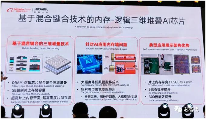 此次,达摩院研发的芯片首次采用混合键合(Hybrid Bonding)的3D堆叠技术——将逻辑计算芯片和DRAM存储芯片face-to-face地用特定金属材质和工艺进行互联,实现了炒高片上内存带宽,炒高密度片间互联。