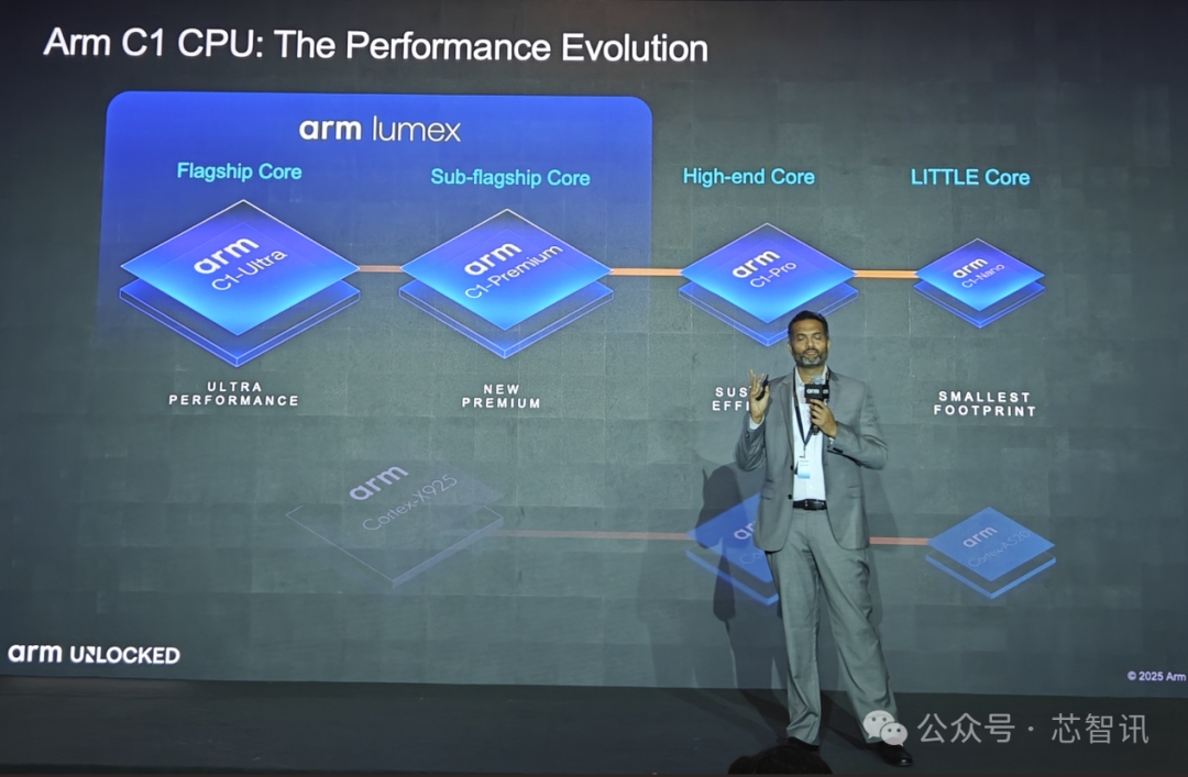Arm全新的 C1 CPU 集群是 Arm Lumex CSS 平台的组件之一,也是首个基于 Armv9.3 架构的CPU 系列产品。