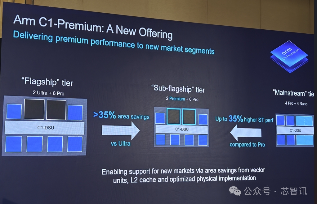 C1-Premium是 Arm 首款次旗舰处理器CPU,追求最高的PAA(性能、功耗、面积)。