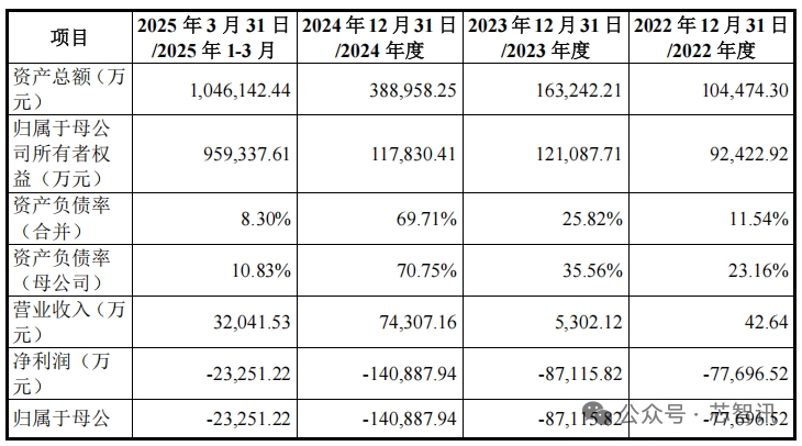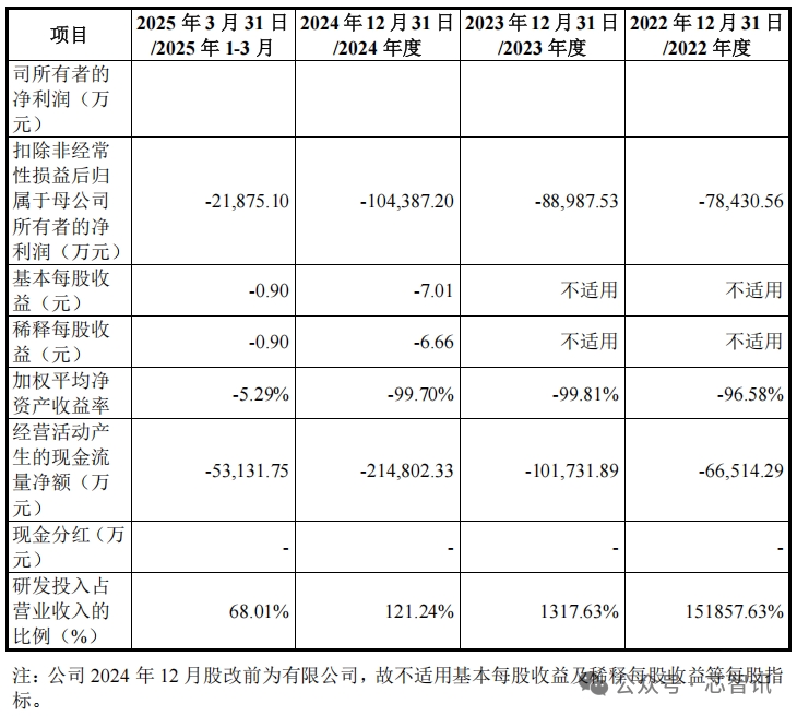 2022年、2023年、2024年、2025年一季度(以下简称“报告期”),沐曦股份营业收入分别为 42.64 万元、5,302.12 万元、74,307.16 万元和 32,041.53 万元,近13个季度累计营收约11.17亿元;归属于母公司所有者的净利润分别为-77,696.52 万元、-87,115.82 万元、-140,887.94 万元和-23,251.22 万元,尚未实现盈利。累计近13个季度亏损额约32.9亿元。