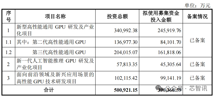 沐曦股份IPO拟募资约39亿元,其中,24.59亿元用于“新型高性能通用GPU研发及产业化项目”、4.53亿元用于“新一代人工智能推理GPU研发及产业化项目”和9.91亿元用于“面向前沿领域及新兴应用场景的高性能GPU技术研发项目”。