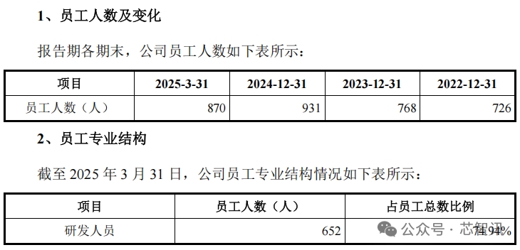 截至 2024 年 12 月 31 日,沐曦股份研发人员合计 706 人,占当年员工总数的比例为 75.83%;截至 2025 年 3 月 31 日,公司研发人员合计 652 人,占当期员工总数的比例为 74.94%。可以看到,最新一期的沐曦股份研发人员数量相比去年年底少了54人,而这似乎也印证了之前沐曦股份裁员的传闻。