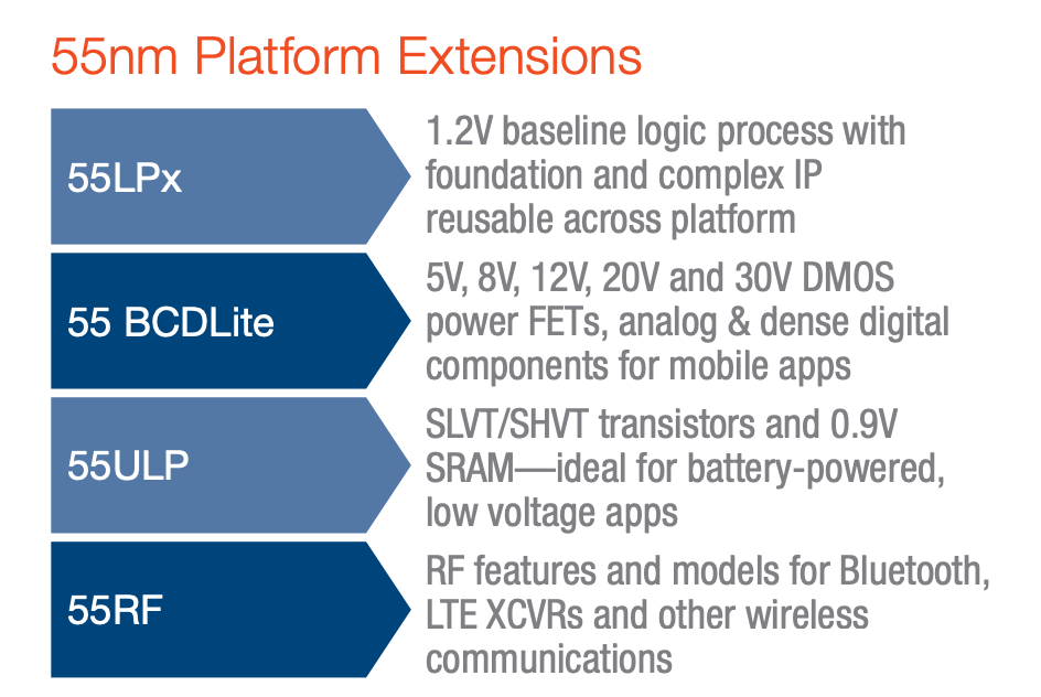 55BCDLite解决方案对低功耗逻辑、出色的低漏源极导通电阻和先进的电源监控进行了微调,能够提供出色的音质,延长电池寿命,提高集成度和面积效率,并支持嵌入式存储器功能。