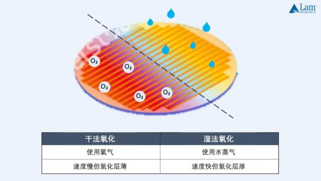 根据氧化反应中氧化剂的不同,热氧化过程可分为干法氧化和湿法氧化,前者使用纯氧产生二氧化硅层,速度慢但氧化层薄而致密,后者需同时使用氧气和高溶解度的水蒸气,其特点是生长速度快但保护层相对较厚且密度较低。
