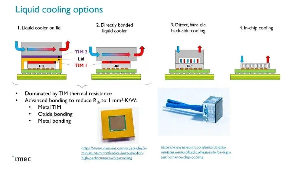 • 高性能CPU/GPU:英特尔的实验性原型机已经把微通道冷却集成在封装上,散热能力突破1kW。