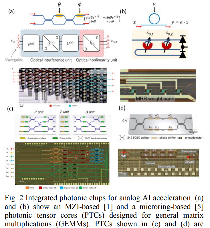 神经网络中大部分计算为矩阵乘法(MAC),光干涉阵列可一次性完成。