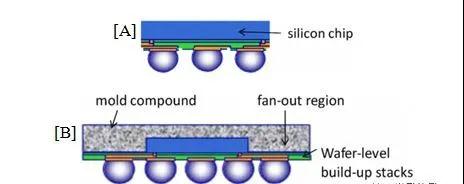 从技术特点上看,晶圆级封装主要分为Fan-in和Fan-out两种。传统的WLP封装多采用Fan-in型态,应用于低接脚(Pin)数的IC。但伴随IC讯号输出接脚数目增加,对锡球间距(Ball Pitch)的要求趋于严格,加上印刷电路板(PCB)构装对于IC封装后尺寸以及讯号输出接脚位置的调整需求,因此变化衍生出扩散型(Fan-out)与Fan-in加Fan-out等各式新型WLP封装型态,其制程甚至跳脱传统WLP封装概念。