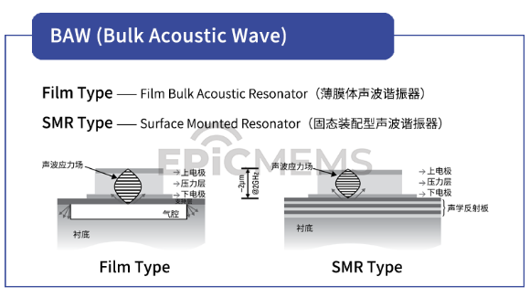 BAW 滤波器:即体声波滤波器。具有插入损耗小、带外衰减大等优点,同时对温度变化不敏感,BAW滤波器的尺寸大小会随着频率升高而缩小,因此尤其适用于1.7GHz以上的中高频通信,在5G与sub-6G的应用中有明显优势。
