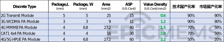 b) 4G向CAT1演进的小型化产品,以及向HPUE或者Phase5N演进的大功率PA,VD值增加到了2附近。