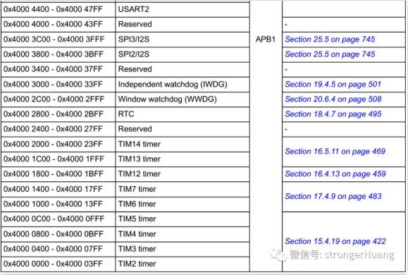 每一个片内外设都有一个对应的基地址,而且是由厂商决定我们不能修改。如下图:
