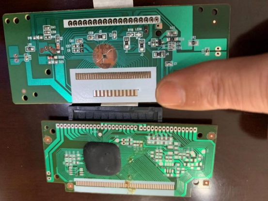 大家常见的“牛屎芯片”也采用了COB工艺。裸片通过Bonding设备固定在PCB线路板上,再滴上环氧树脂胶。之后再通过SMT工艺贴上其它元器件,一块电路板就诞生了。主叫识别电话机控制板就是这样做的,金线圆圈是围绕裸片(Die)的众多Bonding金线。