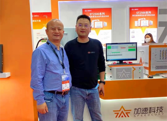 图注:作者戴辉与加速科技CEO邬刚于展台