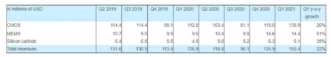在第一季度,X-FAB的碳化硅获得增长,订单量同比增长47%,季度收入为610万美元(约3922万人民币),同比增长35%。在第一季度的过程中,又有2个客户开始批量生产,在总共23个SiC客户中,量产客户数量增加到了10个。