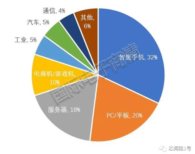 图注:2020年12英寸晶圆产能应用占比 制图:国际电子商情 数据来源:SUMCO