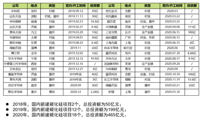 与Si基项目相比,SiC项目总体投资相对较低,且许多中小型城市政府急于提升城市形象,增加半导体产业相关布局。