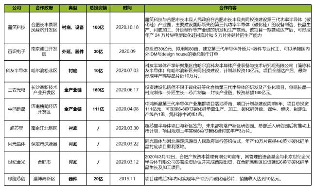 地方政府具体参与的部分SiC项目汇总