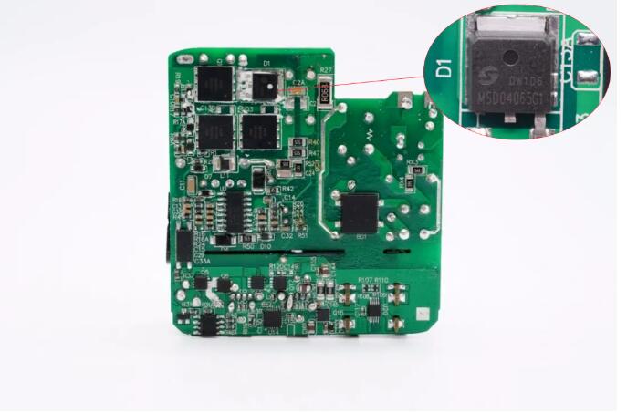 MSM06065G1碳化硅二极管采用DFN5*6封装,超薄封装节省体积,适用于超高功率密度的大功率氮化镓适配器中。
