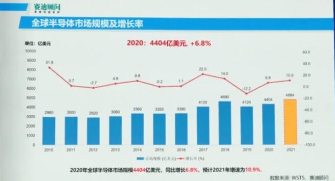 赛迪顾问股份有限公司副总裁李珂认为芯片短缺无外乎三个原因,市场需求因素、供给原因和供需衔接问题。按照市场规模统计数据显示,2010年、2017年半导体市场增速高达31.9%和22%,而这两年中半导体市场并未出现缺芯现象。显而易见,2020年的缺芯并非市场突然爆发式增长、需求放大,而是供给、供需衔接出现了问题。