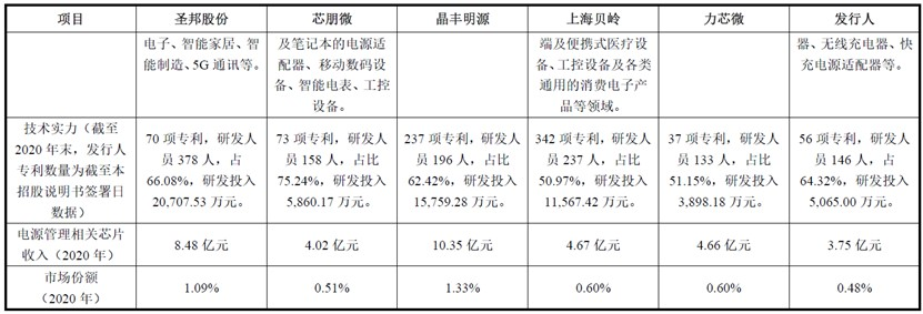 注:1. 表中发行人是指英集芯;2. 根据中商产业研究院统计,2020年中国电源管理芯片市场规模为781亿元。数据来源:英集芯招股说明书