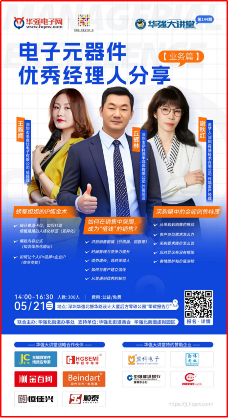 萨科微海外事业部总监丘辉林5月21日将做客华强大讲堂