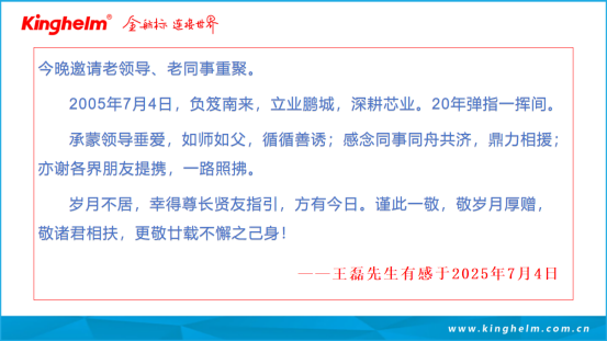 关于做公益,王磊先生是深圳市安德会公益爱心团成员,他创立的勤尚伟业也参与广东省的扶贫“救心”项目捐助困难先心病患儿,他和公司还长期为“川渝同芯会”的年会活动筹办等贡献智慧和力量。2024年12月28日,第8届“光明磊落 熠熠生辉”川渝同芯会年会在福田·五洲宾馆举办,王磊先生担纲总导演,凝心聚力筹备年会盛事,他回想道“每个人都同心协力、全心付出,我只是协调一下,99.99%都是他人的功劳。”比如宋仕强先生提议金航标和萨科微四大官网(www.kinghelm.com.cn/www.slkormicro.com/www.kinghelm.net/www.slkoric.com)同时发力,全方位全世界为年会预热,为众多参会企业义务做宣传,得到了企业家朋友们的一致认可和好评!