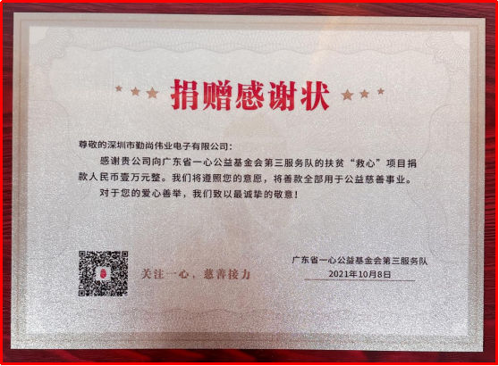 勤尚伟业捐助困难先心病患儿