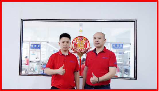 金航标总经理宋仕强(右)与生产基地刘厂长