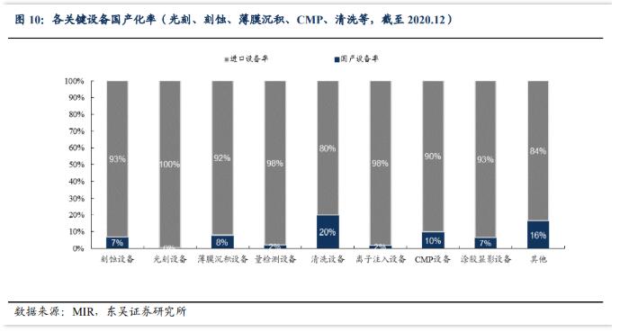从国产化率来看,清洗设备、CMP设备国产化率相对较高,最有可能率先国产化。