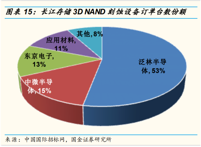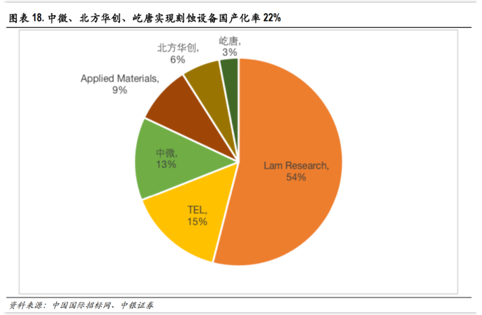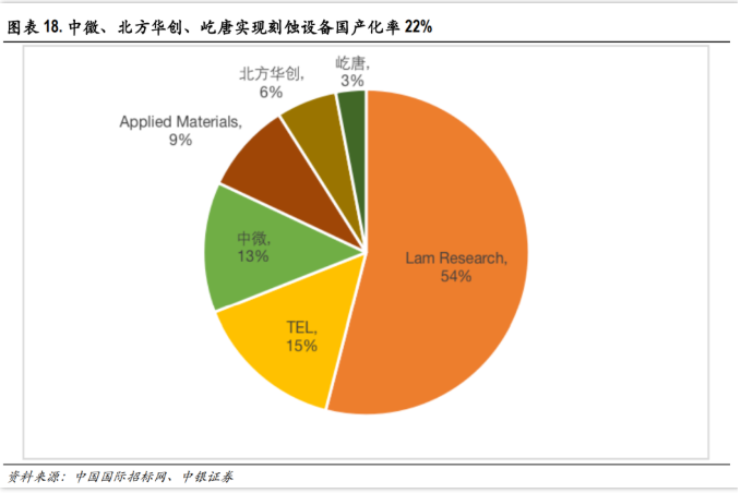 以长江存储18~20年刻蚀设备招标情况为例,中微公司排名第二,占比15%,明显强过北方华创。